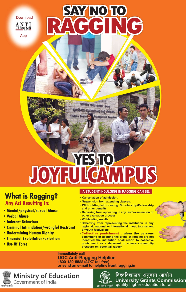 Students and parents are advised to review the official UGC communications on anti-ragging:UGC Anti-Ragging Notice:View Here
